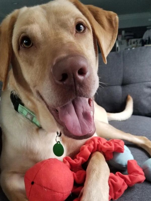 Ryder is a sweet lab mix who loves spending time with his humans! He is currently in a foster home where he enjoys play time, walks and couch snuggles. Ryder takes cues from his people so when you are excited, he is too! And when you want to lounge, he will follow suit. Inquire about Ryder through Border Tails Rescue.